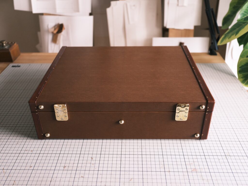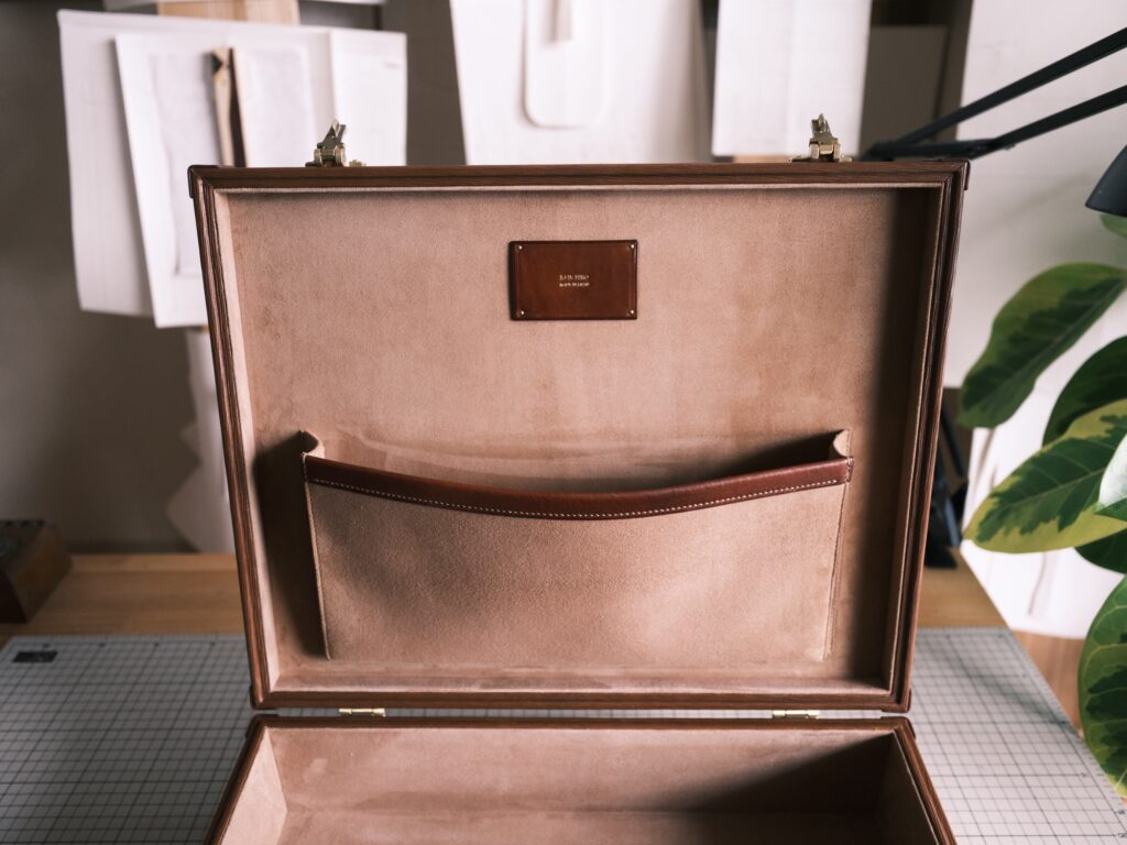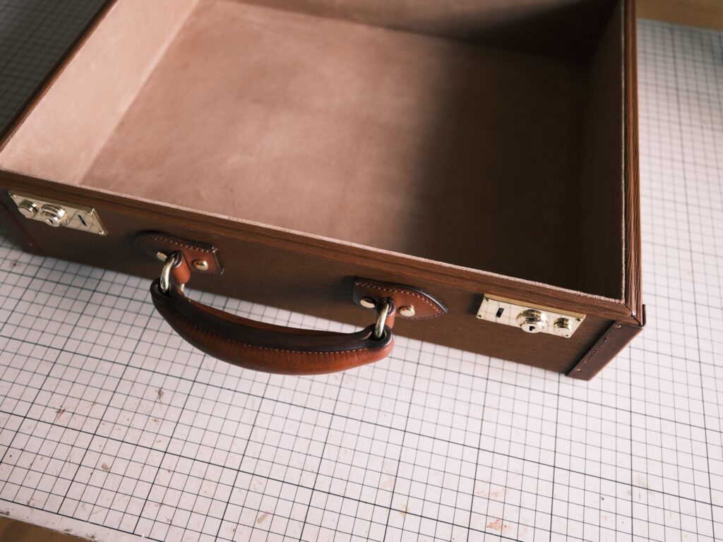 「実は今日の朝5時に、完成したんです。寝てなくて笑」と、ついさっきまで福島さんの手によって命が吹き込まれていたトランクの完成度は、凄まじいものがありました。木材を切り出すところから、全ての工程で福島さんが自分で作業されています。「鞄だけでなく、美しい家具作りなどにも興味がある」と以前仰ってましたが、このトランクを見る限り家具を作ったとしても美しさへの妥協は一切あり得ないでしょう。