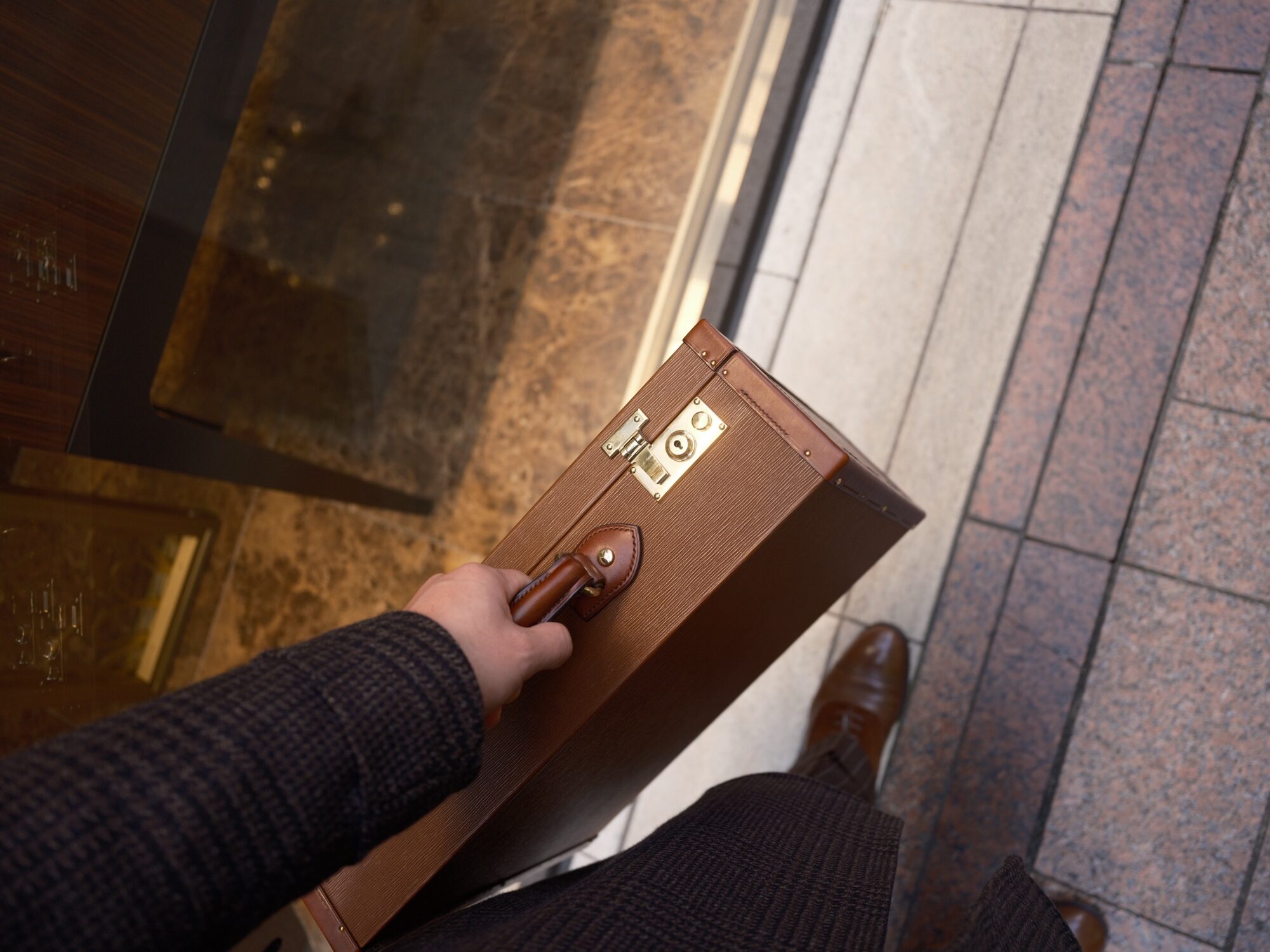 このあと私は打ち合わせなどで銀座-神田あたりをうろうろしていたのですが、格別なバッグのおかげで楽しく仕事が出来ました。新品の今よりも、今後使い込んでいくことで途轍もない雰囲気を放つトランクに進化していってくれることと思います。時の経過が刻まれていくこのトランクの姿を、間近で見られる特別な幸せを噛み締めています。